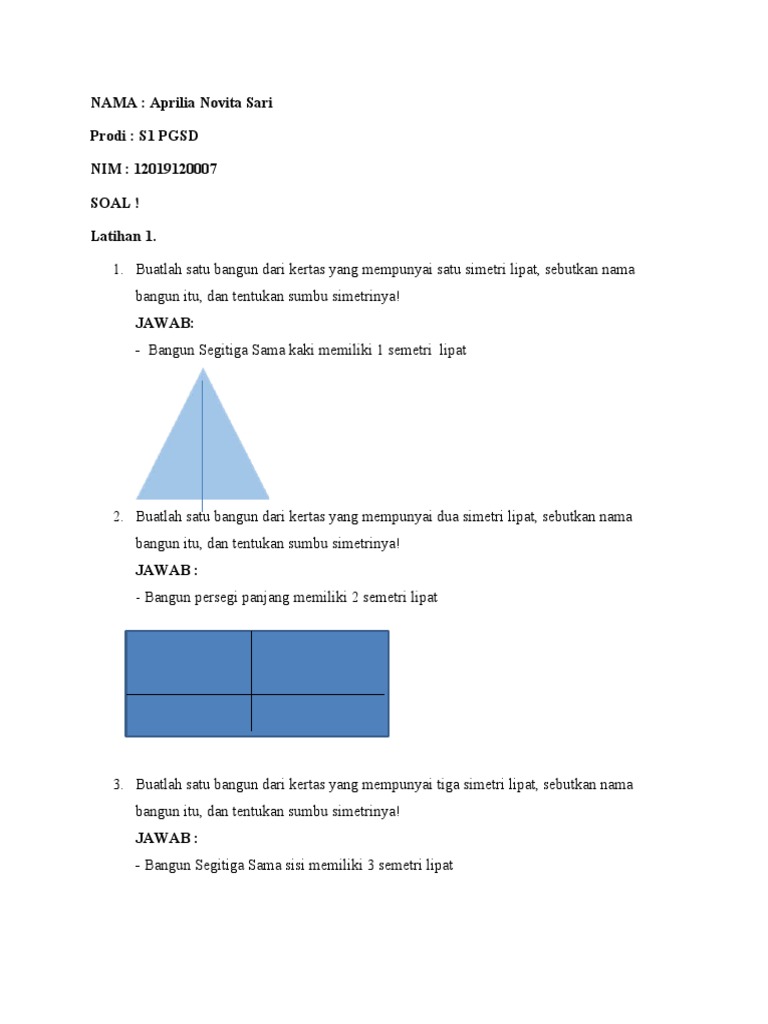 Adhitya saputra s sifat sifat bangun. Simetri lipat berbagai bangun datar rumushitung com. Simetri lipat adalah jumlah lipatan yang dapat dibentuk oleh suatu bidang datar menjadi 2 bagian yang sama besar. Segilima beraturan memiliki lima simetri lipat. Kumpulan rumus matematika tabel simetri lipat, simetri putar, keliling & luas bangun datar, volume & luas bangun ruang, pangkat 2